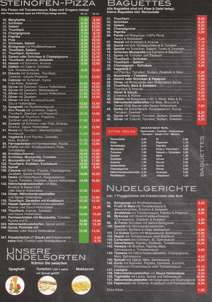 The menu boasts not only a variety of richly topped pizzas, but also tempting options like currywurst and perfectly seasoned fries. Each meal is crafted thoughtfully, ensuring that the flavor resonates with every bite. Be it a casual dinner or a special outing, Pizzeria & Baguetterie bei Panda guarantees satisfaction and a return visit. With fair pricing and a welcoming atmosphere, dining here feels like coming home to comfort food done right. Don't miss out – your taste buds will thank you!